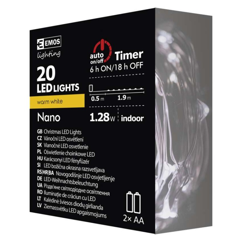 20 LED razsvetljava - NANO, 2x AA, 1,9 m, topla bela