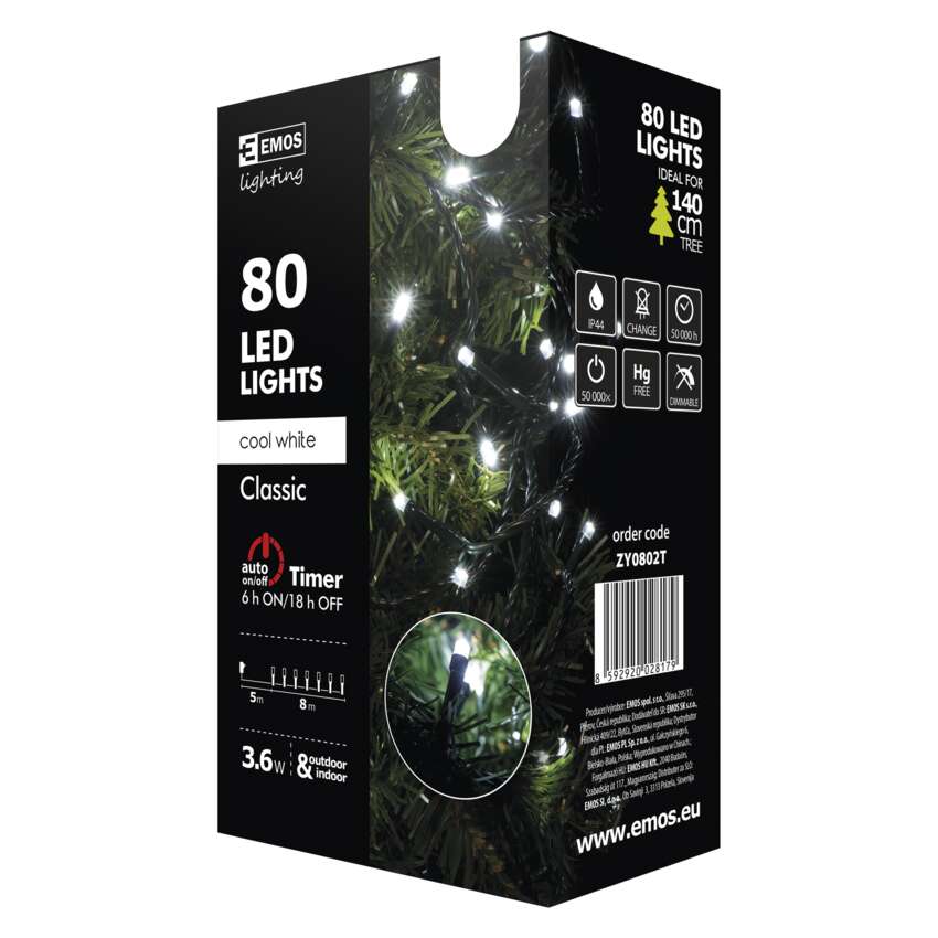 80 LED razsvetljava, 8 m, hladna bela, timer