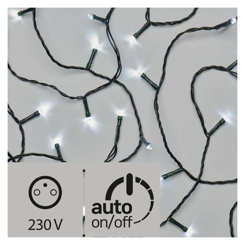 Svetlobna veriga ima v ohišju transformatorja (usmernik) vgrajeno programsko uro. Časovna funkcija pomeni, da bo veriga po prvem vklopu svetila trajno. Po drugem vklopu (prižge se zelena lučka) se programska ura nastavi na 6 ur. Nato se avtomatsko izklopi in 18 ur bo izklopljena. V teh intervalih (6 ur vklopljeno/18 ur izklopljeno) bo avtomatsko delovala, dokler je s tretjim vklopom ne izklopite.Več o izdelku