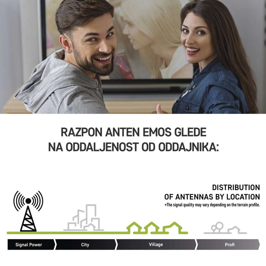 Vasi: Antene za kraje, ki so pokriti z visokokakovostnim signalom. To so predvsem tako imenovane univerzalne antene, ki se odlikujejo po enostavni namestitvi, pri katerih je vse potrebno za namestitev mogoče najti neposredno v paketu. Antene lahko namestite tako v zaprtih prostorih kot na prostem.