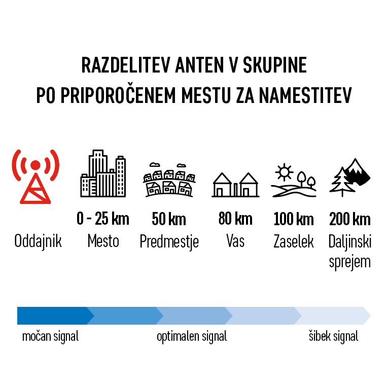 | priporočena namestitvena razdalja od TV stolpa | 0–80 km (vasi) |