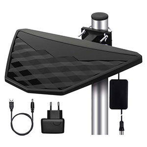 Velika prednost je dejstvo, da se po novem antena napaja z adapterjem USB. Univerzalno napajanje omogoča, da se antena uporablja tudi na mestih brez omrežne napetosti 230 V, torej na primer v avtodomih, tovornjakih ali na dopustu na ladji. Enostavno jo uporabite povsod, kjer je dostopno napajanje preko adapterja USB. Sestavni del seta je napajalni vir v obliki USB kabla skupaj z napajalnikom USB. Za napajanje lahko uporabite tudi USB priključek neposredno na TV ali digitalnem sprejemniku.