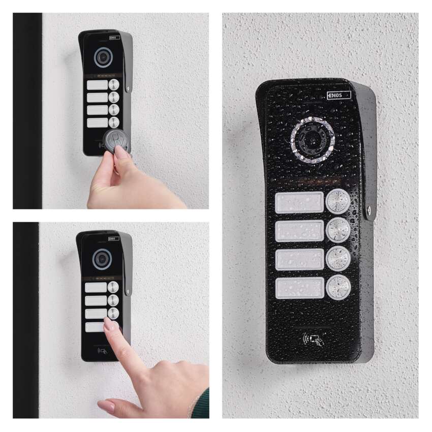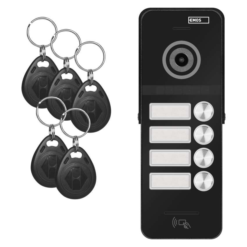 Glavna prednost kamerne enote je vgrajeni čitalnik RFID. V paketu boste našli 5 čipov, ki bodo odprli vrata, ne da bi vam bilo treba vzeti ključe - čip samo pritrdite na enoto kamere. Če vam 5 čipov ne zadostuje, lahko dokupite dodatne čipe. Seveda obstaja možnost namestitve imenskih tablic za 1-4 neodvisne uporabnike (odvisno od izbranega modela).