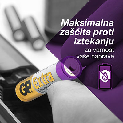 GP baterije linije EXTRA vas razveselijo z nadstandardno zaščito pred iztekanjem in s pet let daljšo vzdržljivostjo, kot pri običajnih baterijah za enkratno uporabo. Tako vam ni treba skrbeti, da bi baterije nepopravljivo poškodovale elektroniko.