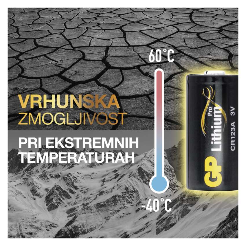 Skrajno široko območje delovnih temperatur od -40 °C do +60 °C daje možnost uporabe skoraj v kakršnihkoli zunanjih pogojih. Namenjene predvsem za zahtevne fotografske in druge naprave, kot npr. pasje ovratnice. Ima odlično moč ob maksimalnem odjemu toka - do 7× močnejša kot navadna alkalna baterija enake velikosti. Skrajno dolg rok uporabnosti do 10 let.