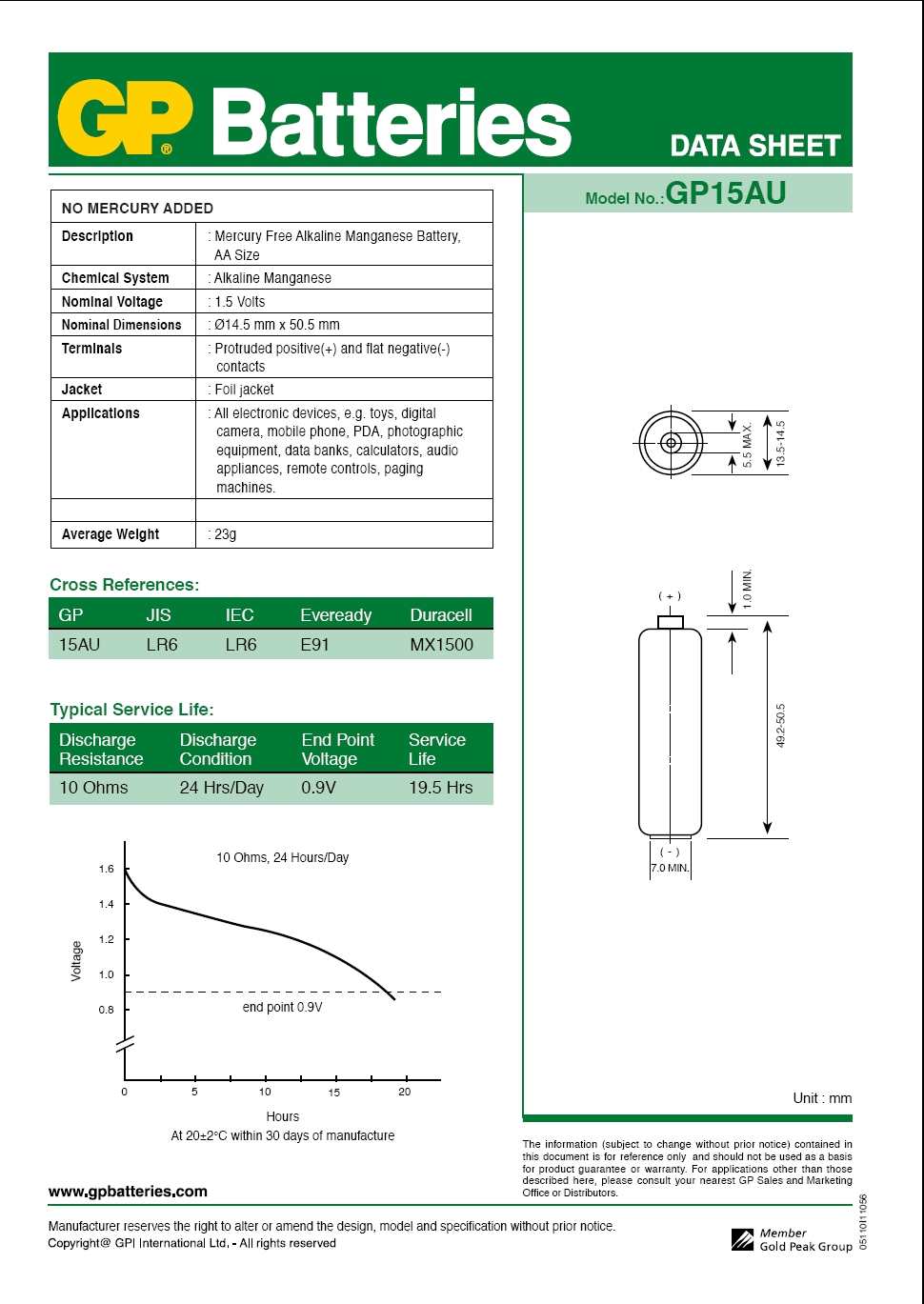 | tipska oznaka | LR6 (svinčnik, AA) |