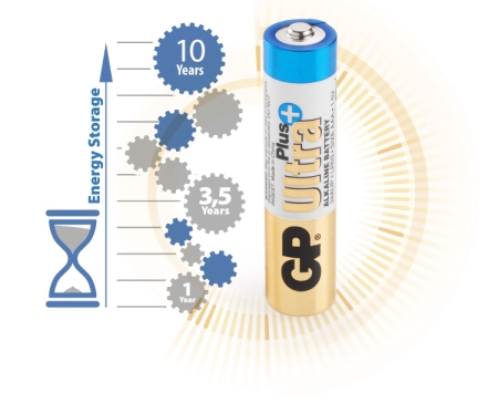 Alkalne baterije GP Ultra+ predstavljajo res močan pogonski motor za vašo elektroniko – imajo kar 60 % več energije kot navadne alkalne baterije. Zato ohranjajo pri življenju tudi še tako energetsko intenzivne naprave, in to veliko dlje, kot ste vajeni. Opremite svojo svetilko, vremensko postajo, medicinski pripomoček ali priljubljeno igračo svojega otroka z baterijami, na katere se lahko zanesete.