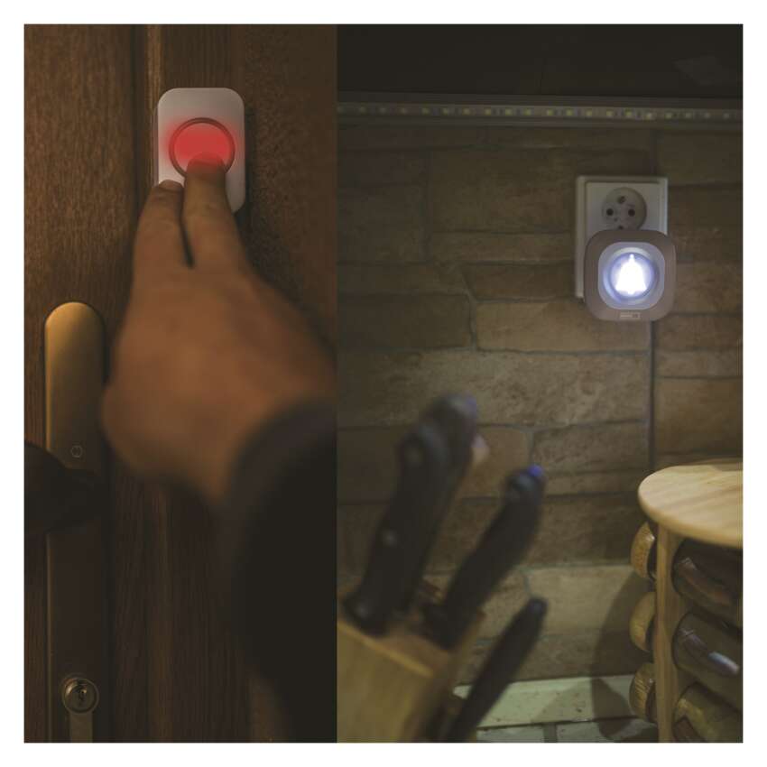 Nič več vlečenja žic in vrtanja v stene. vodoodporni gumb in zvonec komunicirata med seboj na razdalji do 150 metrov. Zvonec je zasnovan za notranjo uporabo. Gumb vratnega zvonca z zaščito IP44 je popolnoma pripravljen na neugodne vremenske razmere. Položite ga lahko na vratih ali pri vhodu. Komplet ima funkcijo samoučenja - gumb lahko ustvari lastno kodo za seznanjanje, ki jo zvonec sprejme in shrani v svoj pomnilnik. Zaradi funkcije samoučenja tudi sosednji zvonovi niso prizadeti.