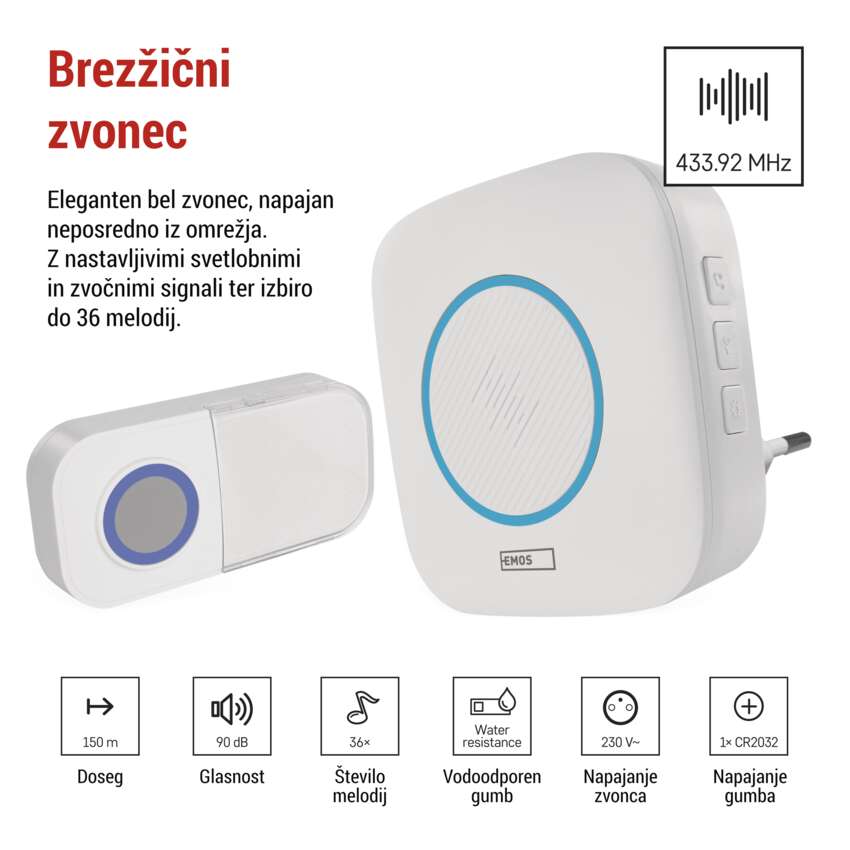 Brezžični hišni zvonec P5737 za vtičnico