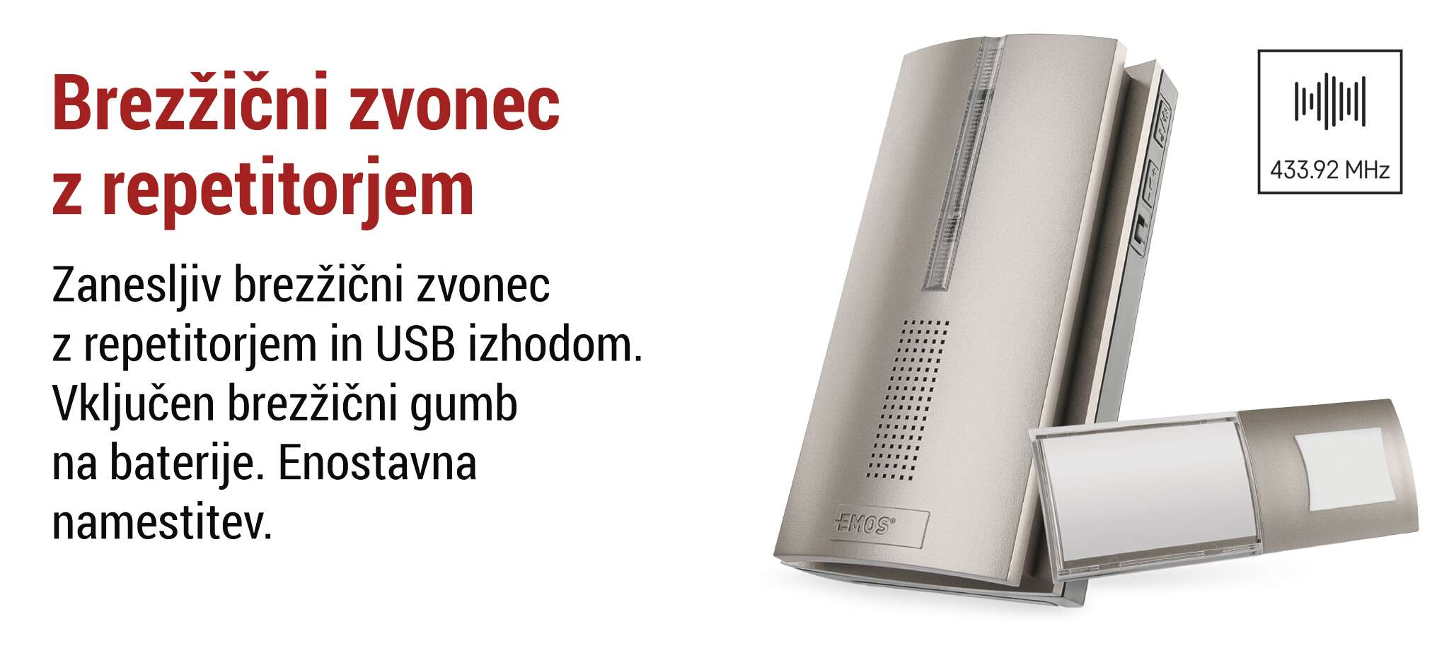 Brezžični zvonec za vrata z dodatnim dosegom in funkcijo ponovitve
