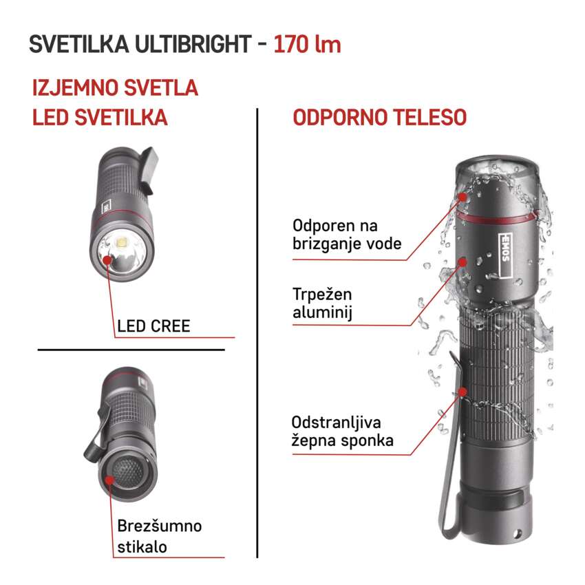 Potrebujete majhno in lahko, kljub temu pa kakovostno in zmogljivo svetilko, ki jo boste imeli vedno pri roki? Potem je EMOS Ultibright 60 prava svetilka za vas.