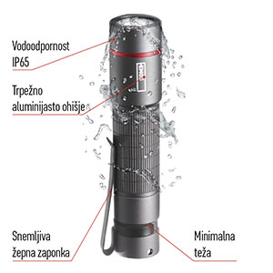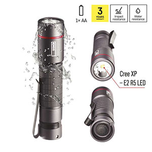 Z dimenzijami 103 × 25 mm ne zavzame veliko prostora, tehta pa le 47 g, zato jo imate lahko vedno ob sebi v torbici ali v avtomobilskem predalu. Zagotovo pa prav pride tudi vsakemu inštalaterju ali električarju. Opremljena je s praktično snemljivo sponko, s katero svetilko enostavno pritrdite na pas, nahrbtnik ali drugo mesto. V smislu varnega rokovanja pa je zelo uporabna tudi zanka, ki je prav tako snemljiva.