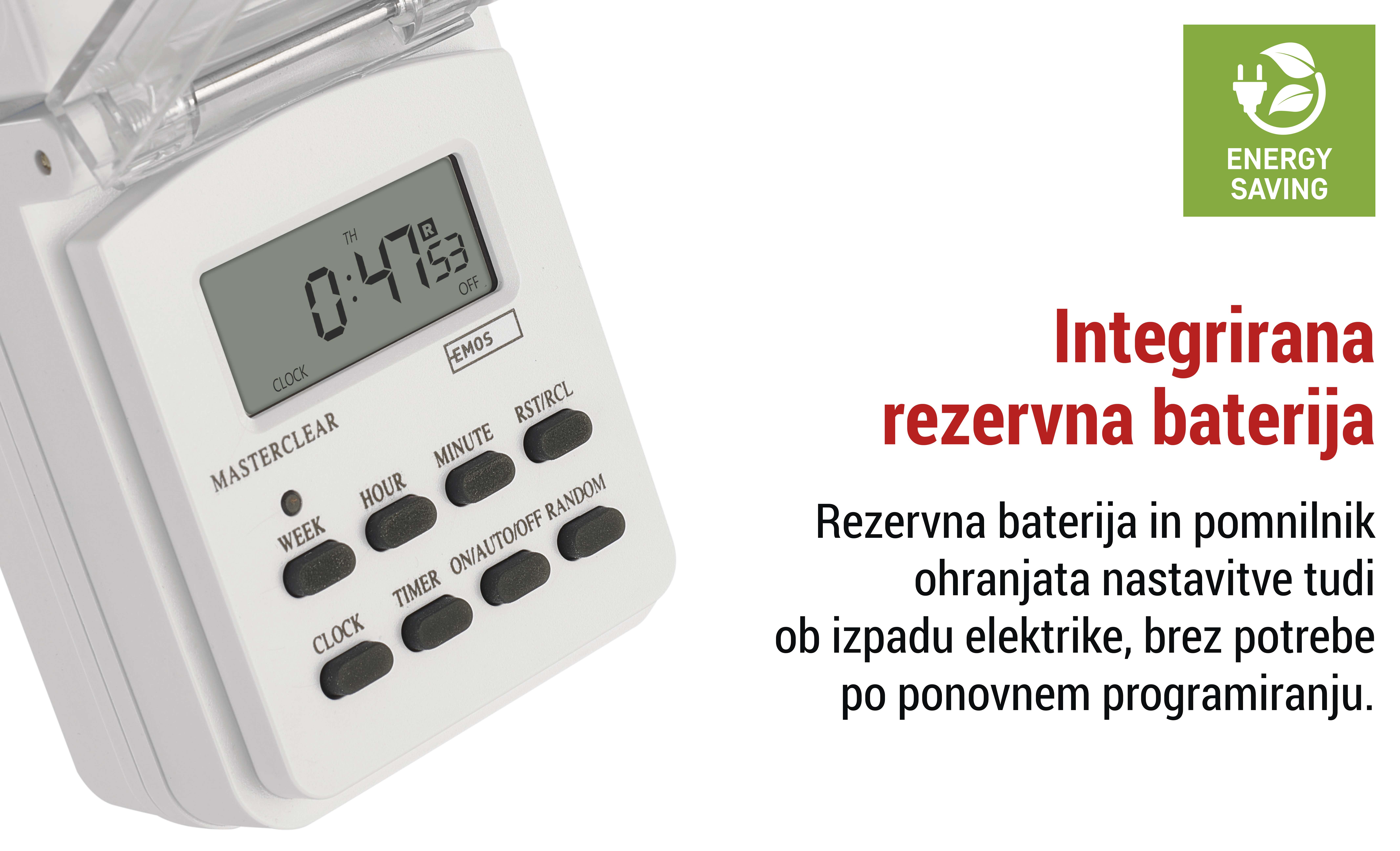 - Zaščita baterije bo ohranila nastavitve med izpadom električne energije