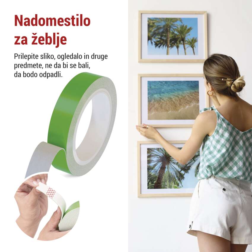- Z uporabo penastega traku lahko obesite tudi težke stvari brez strahu pred padcem
