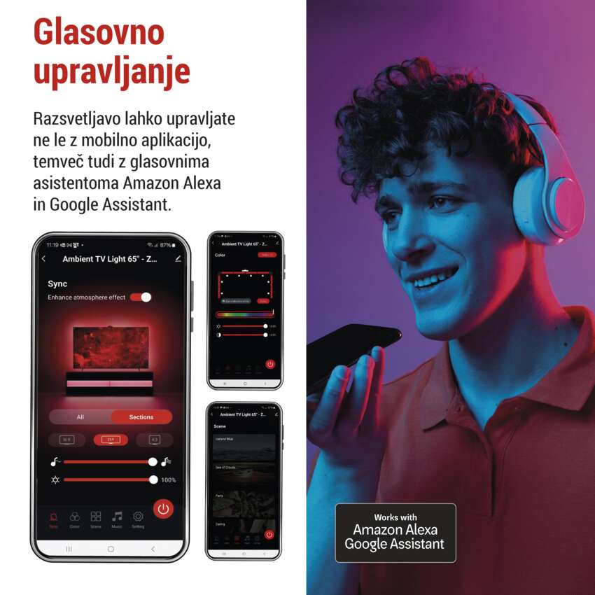 - združljiv z glasovnimi pomočniki Amazon Alexa in Google Assistant