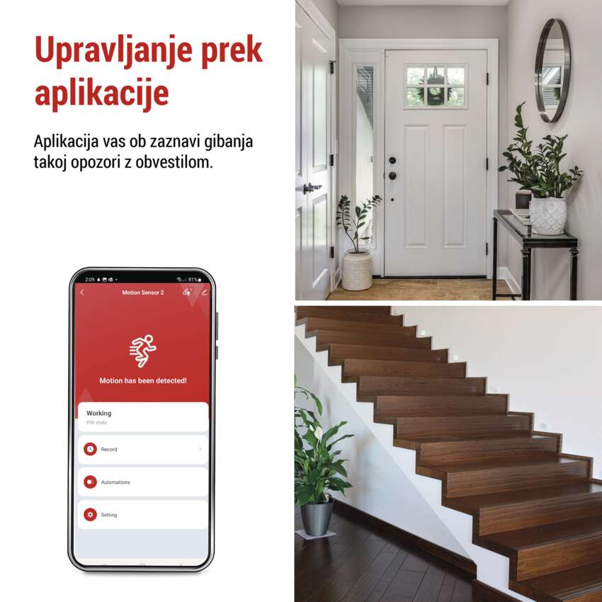 Priključite senzor na prehod ZigBee in ga upravljajte z mobilno aplikacijo EMOS GoSmart, ki je na voljo za Android in iOS. Nato z aplikacijo nastavite in nadzorujte senzor točno tako, kot potrebujete. Nastavite avtomatiko, nadzorujte glasovne pomočnike, spremljajte posnetke gibanja in povezujte z drugimi pametnimi napravami.