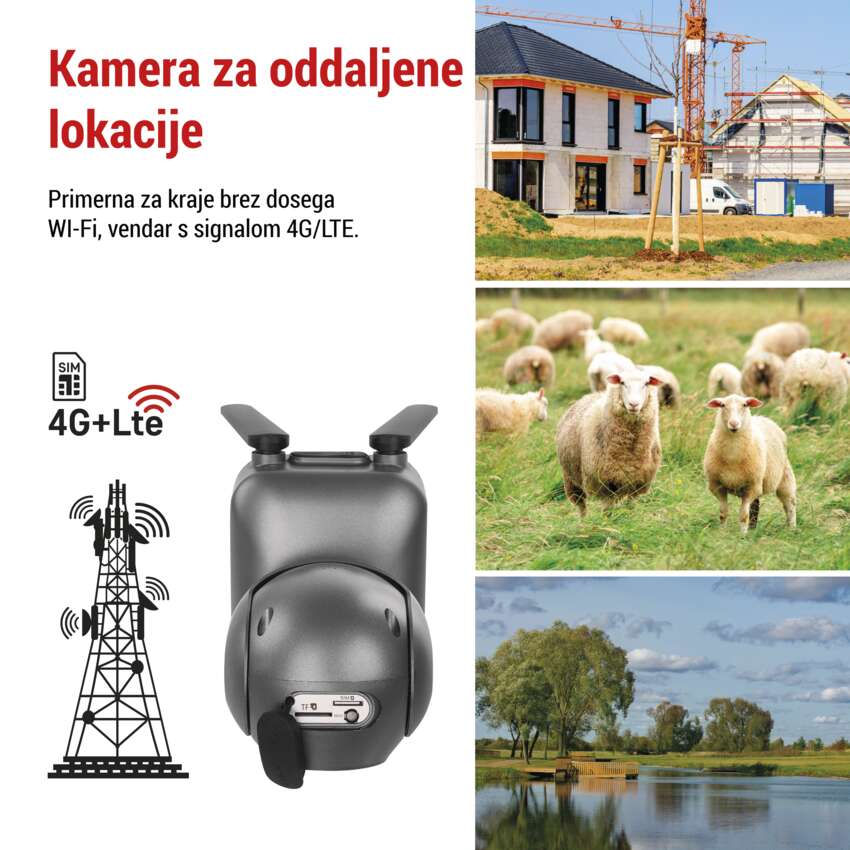Zunanja pametna kamera s povezljivostjo 4G/LTE ponuja revolucionarno kombinacijo funkcij za zagotavljanje varnosti in omogočanje prilagodljivosti pri namestitvi. S povezavo prek mobilnega omrežja je mogoče izbrano območje spremljati kjer koli, kjer nimate povezave Wi-Fi, vendar je pokritost s signalom mobilne telefonije, na primer v koči v bližini gozda, čebelnjakih ali na oddaljenih posestvih. Za to imejte svoje premoženje pod nadzorom kjer koli ste. Z obvestili v mobilni napravi se lahko odzovete na vsak dogodek.