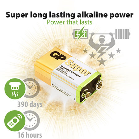 Baterie GP Super Alkaline sodijo v osnovno opremo vsakega gospodinjstva. Najbolje jih izkoristite v vseh napravah z nizko porabo toka, kot so daljinski upravljalniki, igrače, senzorji dima in brezžični mikrofoni. V primerjavi z navadnimi cink-ogljikovimi ali cink-kloridnimi baterijami vas oskrbijo s kar 7× večjo količino energije.