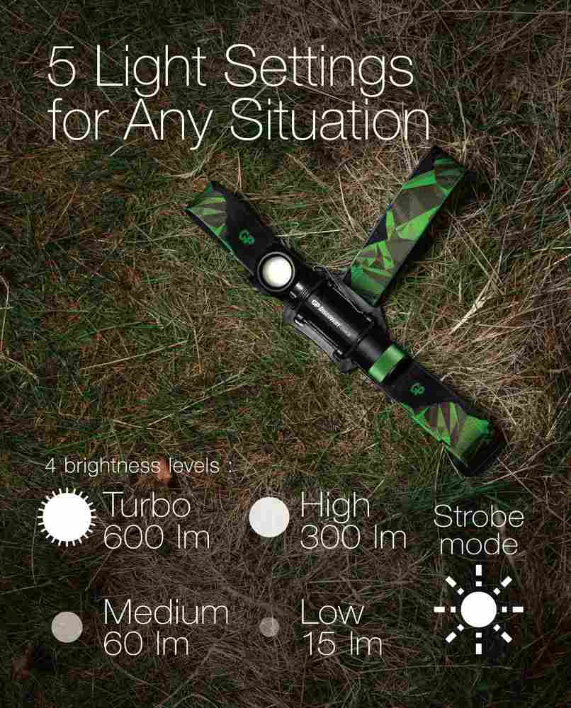 Pri podjetju GP se dobro zavedajo, da vsaka dejavnost zahteva različno intenzivno svetlobo. Zato so naglavno svetilko CHR35 opremili s pet različnimi načini svetlobe, zaradi katerih jo boste zlahka vzljubili.