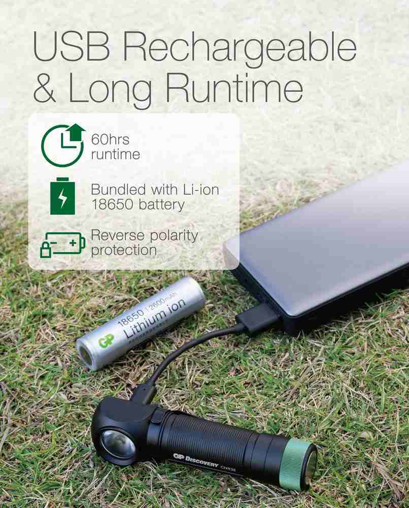 Zaščitna svetilka GP Discovery Series je popoln pripomočekza delo in prostočasne dejavnosti. Njena dolga trajnost, hitro polnjenje praktično kjerkoli, možnost premestitve svetilke, kjerkoli jo potrebujete, trajnost, nastavljivi način osvetlitve in številne druge funkcije jo naredijo popolno za vsakodnevno udobno uporabo.