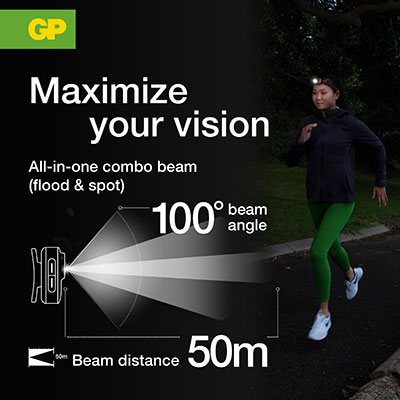 GP Xplor PHR16 z dometom 50 metrov in svetilnostjo 300 lm je odličen partner za vse tekače, ki želijo svojo zmogljivost dvigniti na naslednjo raven. Prav tako je neprecenljiva kot kakovostna rezervna čelna svetilka, ki bo všeč vsem športnim navdušencem na prostem. Uporablja se pri pohodništvu, plezanju, kampiranju ali jamarstvu. Njegova visoka kakovost je podprta s triletno garancijo.