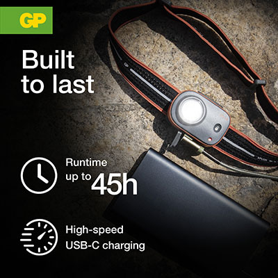 Ne želite se preveč omejevati in razmišljati o stanju baterije vaše čelne svetilke? GP Xplor PHR16 ponuja do 45 ur delovanja baterije. S kablom USB-C, ki je priložen vsakemu paketu, lahko priročno in hitro napolnite baterije na primer iz napajalne banke. Žaromet je opremljen z indikatorjem LED, ki kaže stanje baterije in polnjenja.