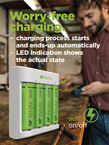Nova generacija polnilnikov GP, ki vključuje izdelke za običajno in profesionalno uporabo, namreč prinaša edinstveno zasnovo polnjenja. Z uporabo polnilnikov GP skupaj z baterijami ReCyko prihranite tako naravo kot tudi svojo denarnico.