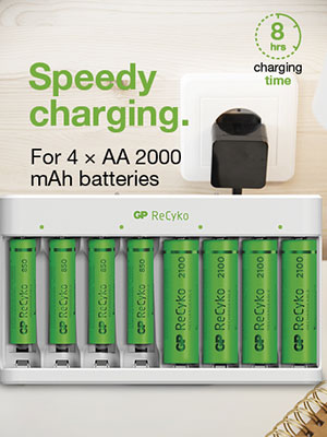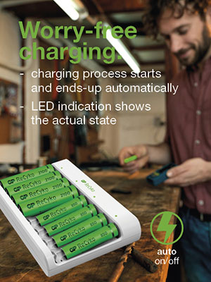 Nova generacija polnilnikov GP, ki vključuje izdelke za običajno in profesionalno uporabo, namreč prinaša edinstveno zasnovo polnjenja. Z uporabo polnilnikov GP skupaj z baterijami ReCyko prihranite tako naravo kot tudi svojo denarnico.