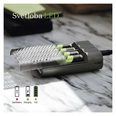 Spoznajte eleganten polnilec spametnimi varnostnimi in tehničnimi funkcijami, ki polni do 4 baterije AA ali AAA hkrati.