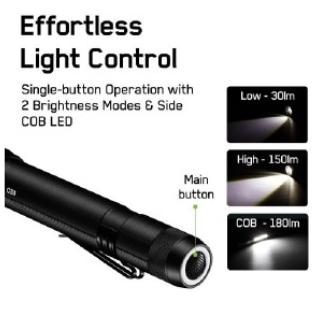 Za razliko od navadnih ročnih svetilk se ponaša s CREE in COB LED čipi, ki sodijo med svetovno tehnološko špico. Ima idealno velikost za v žep delovnih hlač, od koder vam med delovno izmeno po zaslugi kovinske sponke ne pade. Je zadnje orodje, pri tem pa ključnega pomena, ki v vaši delavnici ali garaži manjka. Pritrjena z magnetom neposredno na pokrovu motorja olajša delo ne le avtomehanikom. Zaradi te spretnosti ima svoje fiksno mesto tudi v obvezni opremi avta vseh odgovornih voznikov, ki jih podpre pri nepričakovani nočni menjavi kolesa.