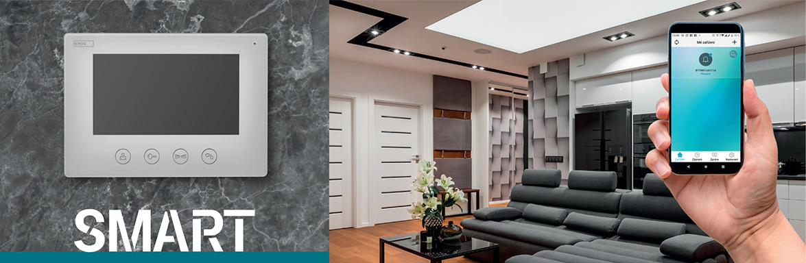 Povsem nov nivo komunikacije in varovanja prinašajo video domofoni linije SMART. Posnetki zunanje kamere se lahko prenašajo v vaš mobilni telefon ali tablični računalnik. Od koderkoli torej lahko nadzorujete svojo hišo z okolico ali se odzovete na obisk.