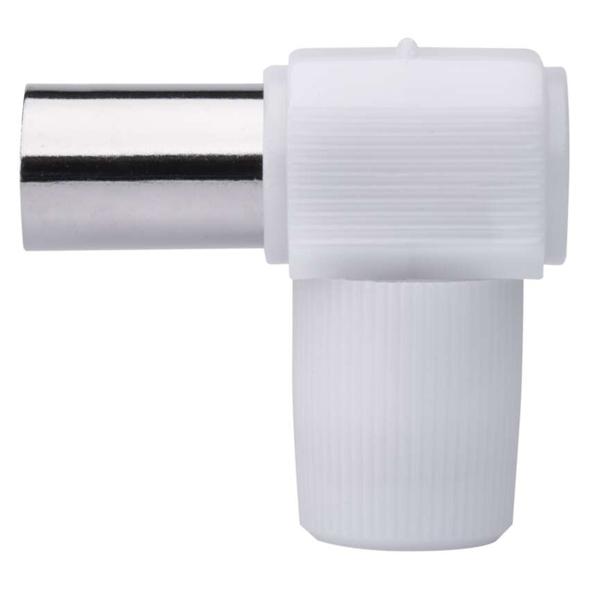 IEC priključek kotni vtikač je namenjen za povezovanje koaksialnega kabla in je bele barve. Prodaja se po 10 kosov in je plastičen.