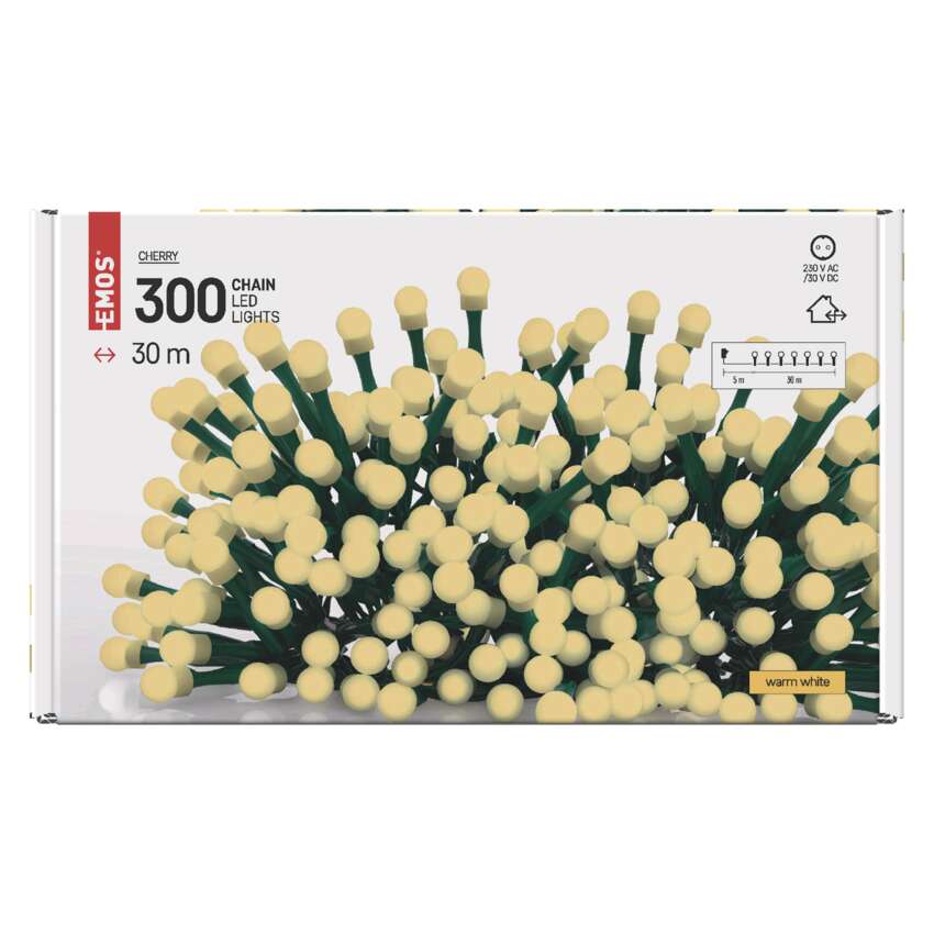 LED božična cherry veriga – kroglice, 30 m, zunanja in notranja, topla bela, časovnik