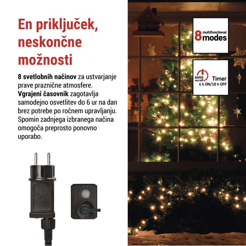 LED božična cherry veriga–kroglice, 8 m, zunanja in notranja, topla bela,programi,časovnik