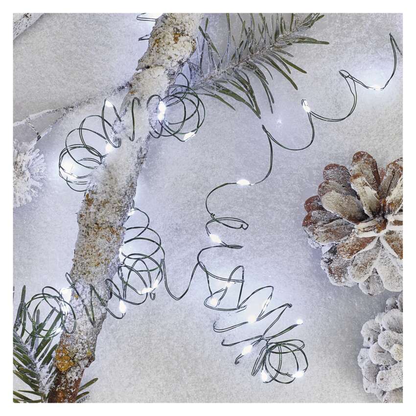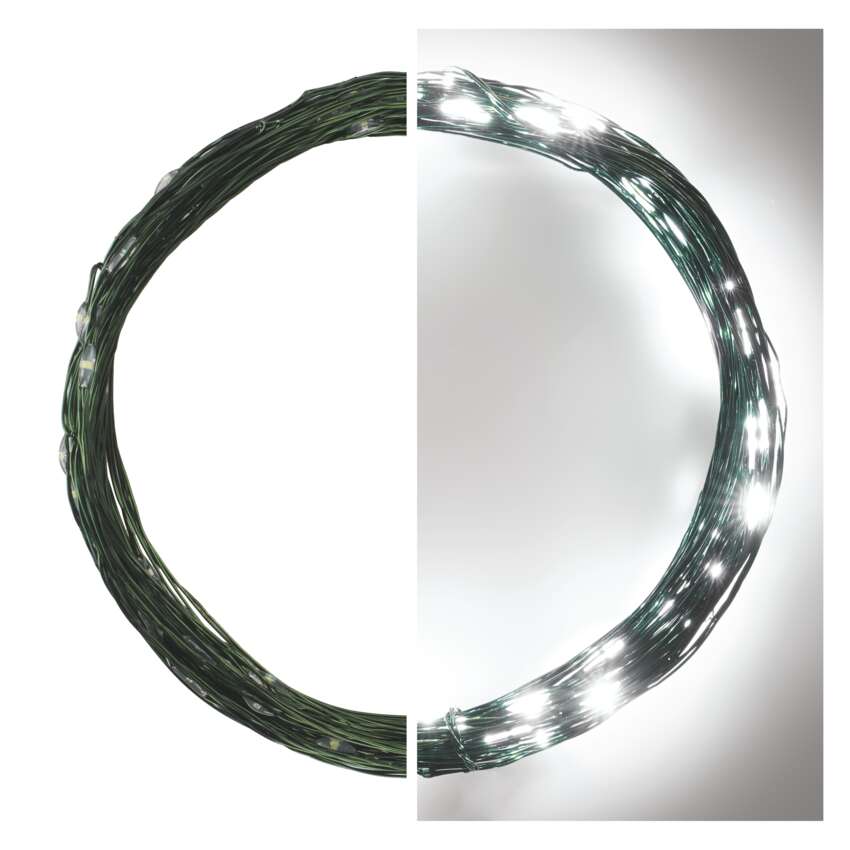 LED božična nano veriga zelena, 7,5 m, zunanja in notranja, hladna bela, časovnik