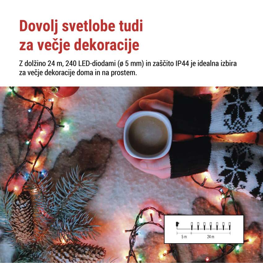 LED božična veriga, 24 m, zunanja in notranja, večbarvna, programi, časovnik