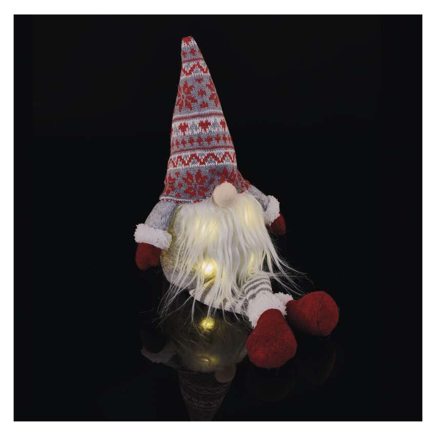 LED božični škrat sedeč, 27 cm, 3× AA, notranja, topla bela