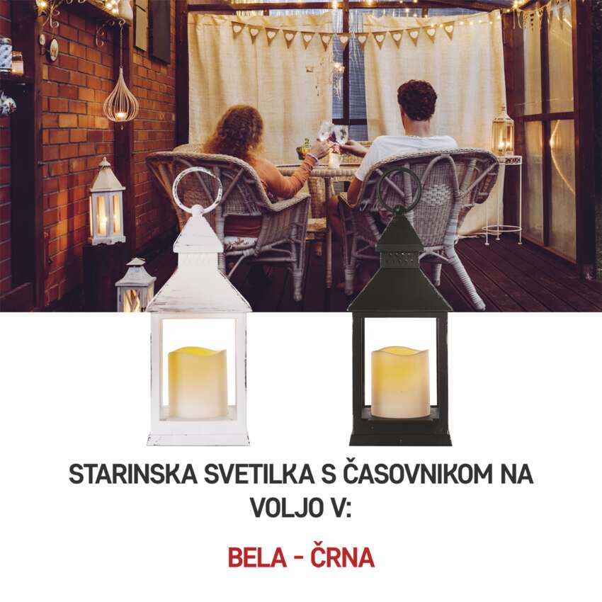 LED dekoracija – laterna antik črna utripajoča, 3x AAA, notranja, vintage, časovnik