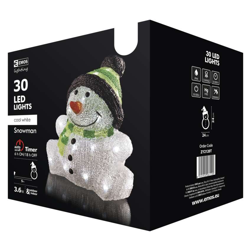 LED dekoracija - snežak, 24cm, zunanja, CW, timer