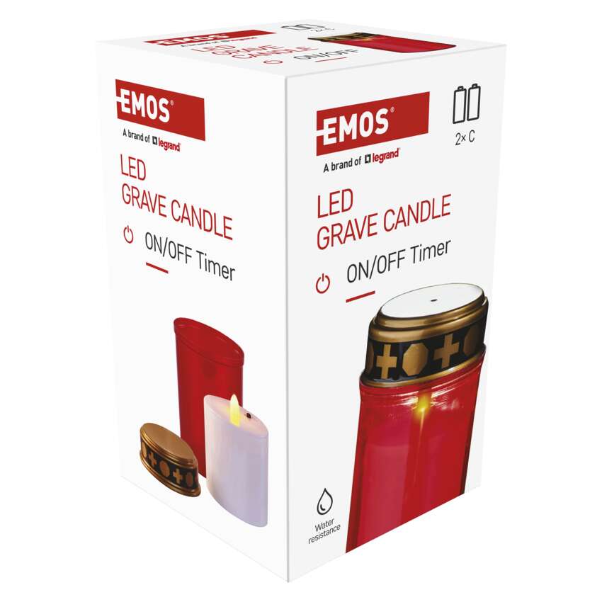 LED nagrobna sveča rdeča, 2x C, zunanja in notranja, topla bela, časovnik