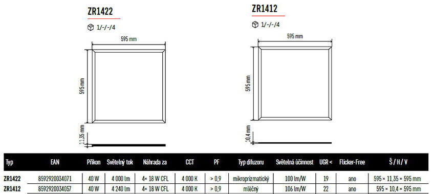 LED PANEL 60×60 40W IP20NW UGR SET2