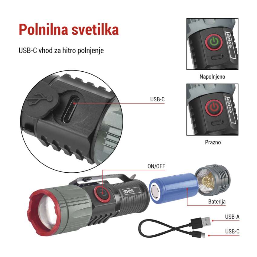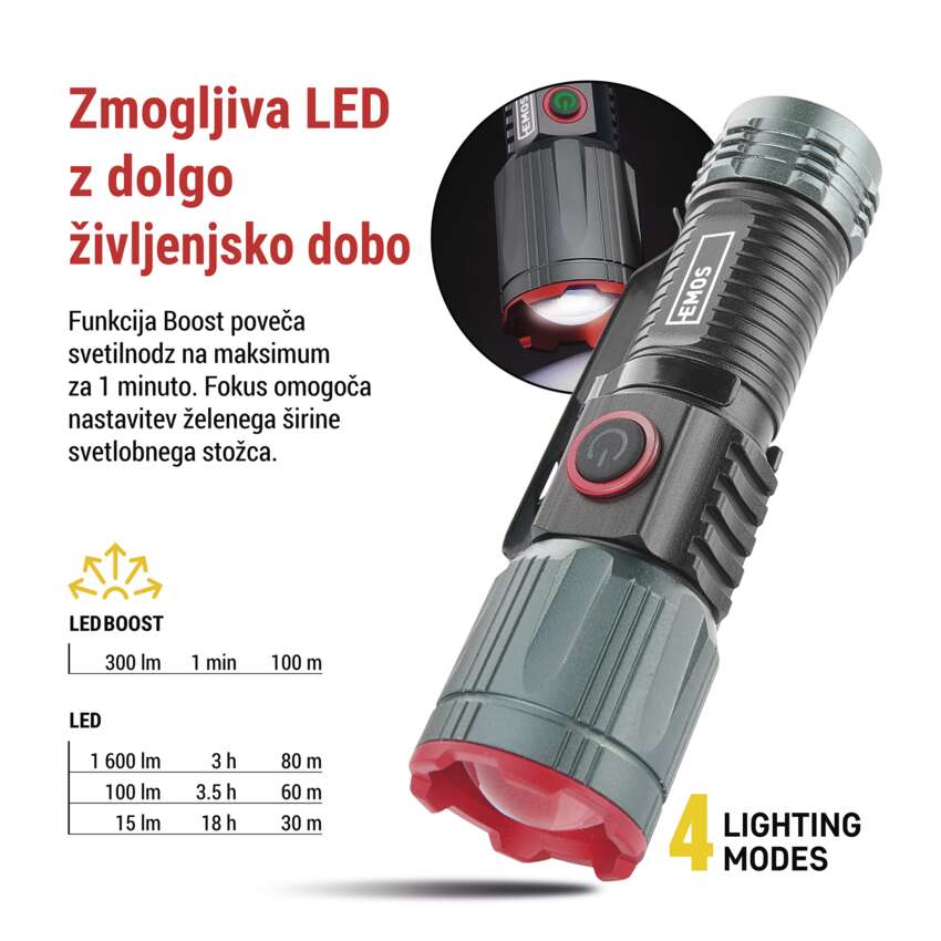 | čas svetenja podrobnost | LED BOOST – 1 min, LED 100 % – 3 ur, LED 50 % – 3,5 ur, LED 10 % – 18 ur |