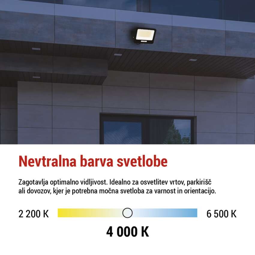 LED reflektor GLARO 100W, črni, IP65, 10000 lm, nevtralna bela