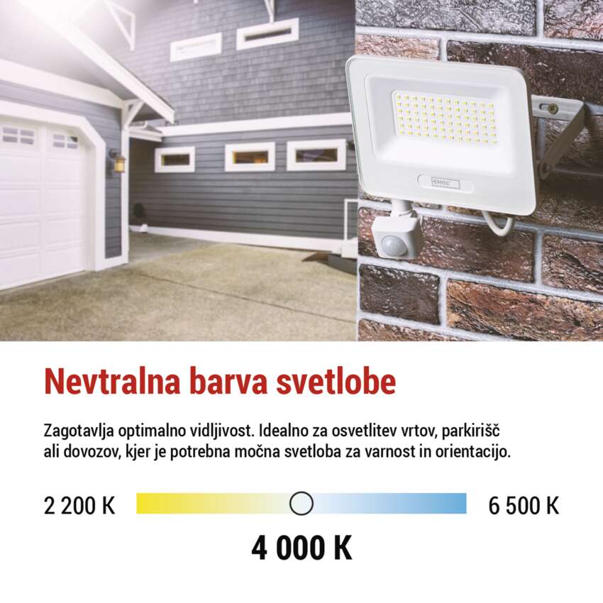 LED reflektor GLARO PIR 20 W, bel, IP54, 2000 lm, nevtralna bela