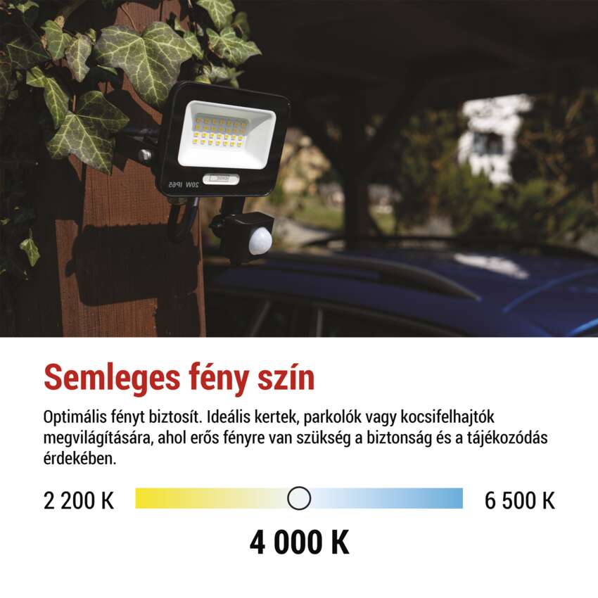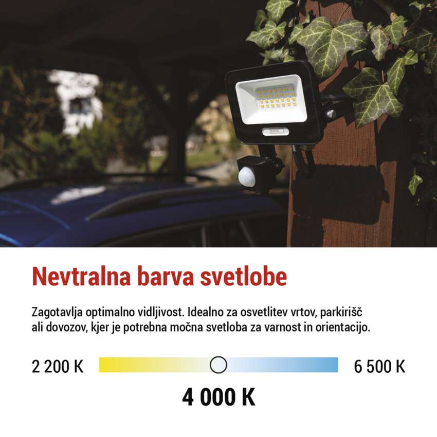 LED reflektor GLARO PIR 20 W, črni, IP54, 2000 lm, nevtralna bela