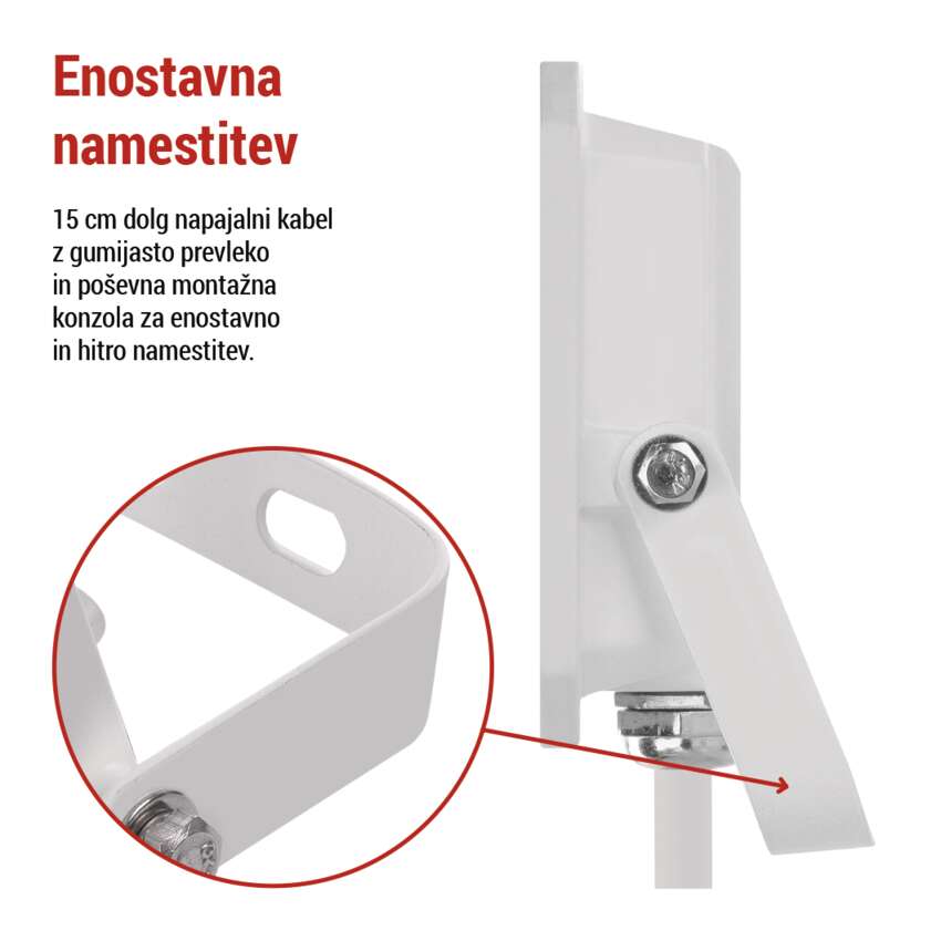 - Načelna montažna konzola omogoča boljši nagib reflektorja za lažjo montažo