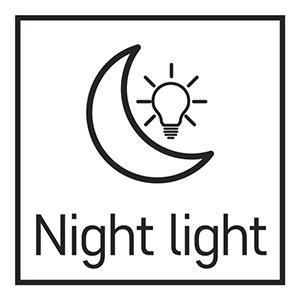 Svetilka ima vgrajen poseben nočni način, pri katerem koristi minimalen svetlobni tok. Nočna svetloba izboljšuje udobje osvetlitve v večernih urah in pomaga, da lažje zaspite oziroma se orientirate v prostoru. Poleg tega ima svetilka v tem načinu le minimalno porabo.