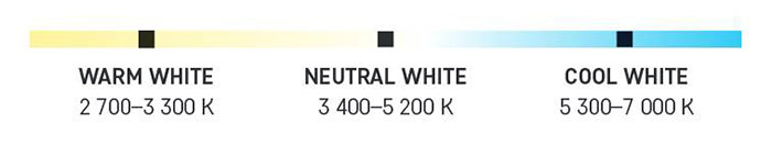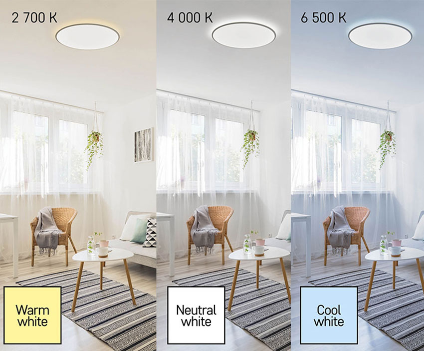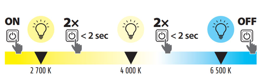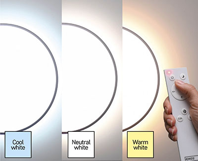 Pri svetilki lahko preko daljinskega upravljalnika barvo svetlobe poljubno menjate. Možnost je nastaviti toplo barvo svetlobe (Tc < 3 300 K), ki je najbližje klasični žarnici in deluje najbolj prijetno. Nevtralna bela barva svetlobe (3 400 K < Tc < 5 200 K), ima najbližje navadni dnevni svetlobi. Hladna bela (Tc > 5 300 K) je idealna za delovne prostore in hodnike, ali za osvetlitev izdelkov.