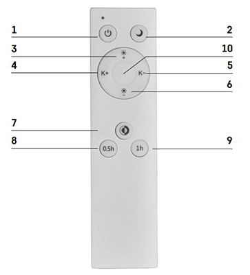 - Night Light - 1. pritisk na tipko vklopi nočno svetlobo; 2. pritisk na tipko preklopi temperaturo kromatičnosti