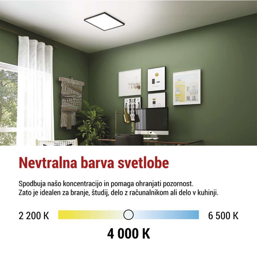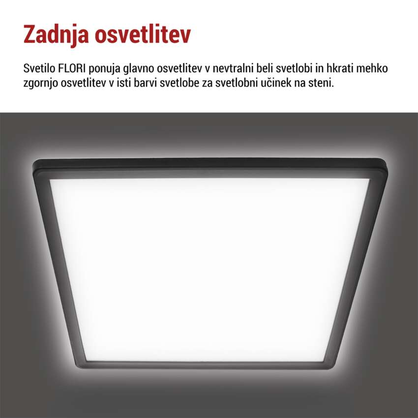 LED svetilo nadometno FLORI kvadratni, črna, 18W, nevtralna bela